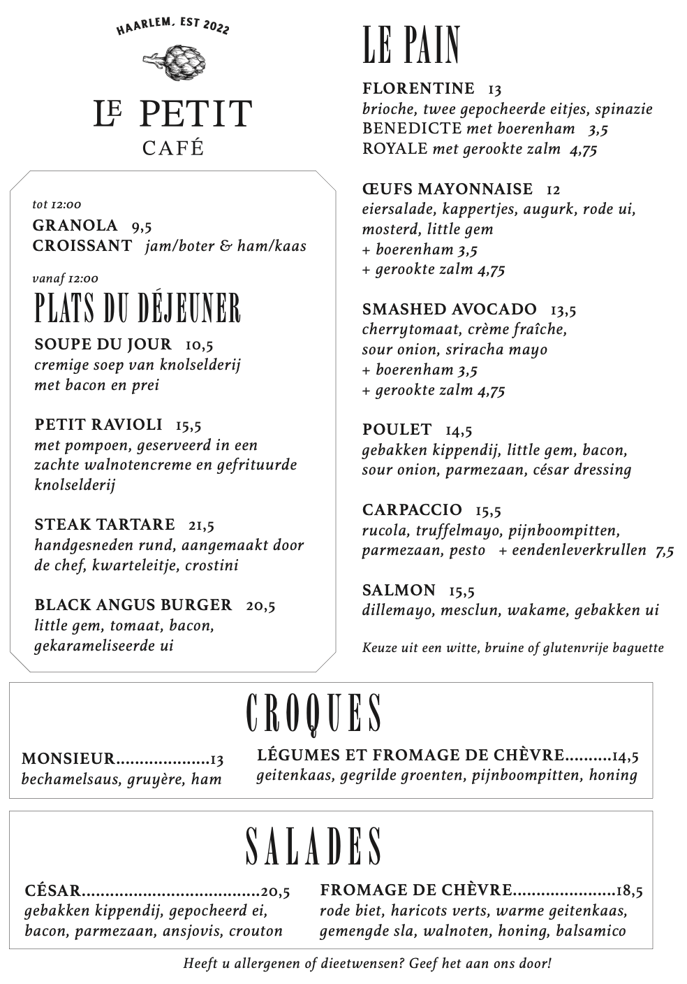 Sinds april 2023 bevindt zich in een historisch pand aan de Jacobijnestraat en Gedempte Oude Gracht Le Petit Café. Een Franse bistro in centrum Haarlem in een voormalig deel van de oudste boekenhandel van Haarlem;